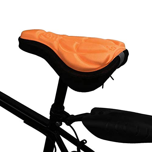 Pour gagner du connfort sans toutefois changer sa selle de vélo, il est toujours possible d'utiliser une housse de selle rembourrée en gel de silice par exemple cpmme cette housse de selle universelle Tourbon noire et orange :