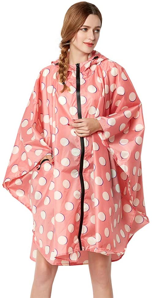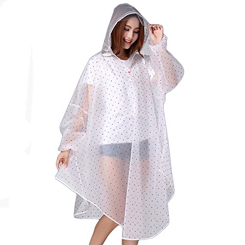 Pour toutes celles qui recherchent un poncho de pluie plus fantaisie, on pourra opter pour le poncho transparent à petit pois :
