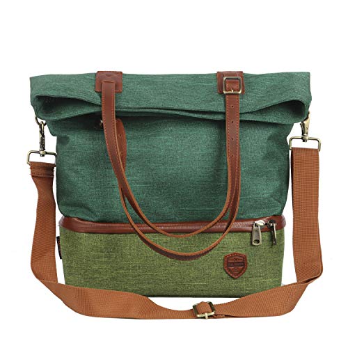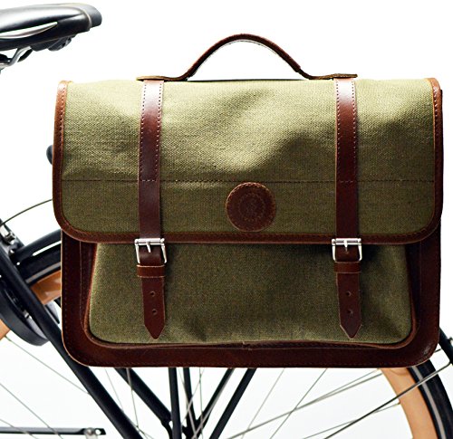 Le cartable FS bike en cuir et toile canvas kaki est parfaitement amovible et peut être porté en bandoulière.